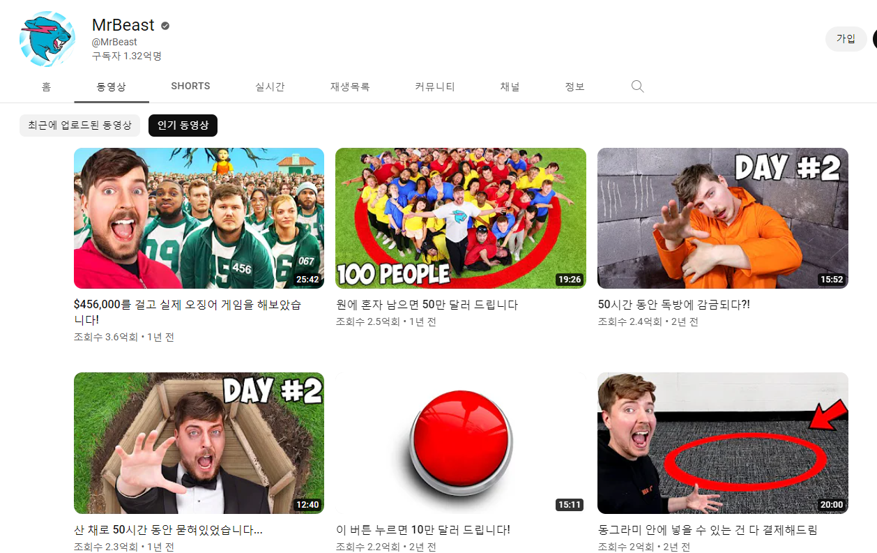 미국 랭킹 TOP 2, 미스터비스트(MRBEAST) 유튜브 수익 과연 얼마일까?