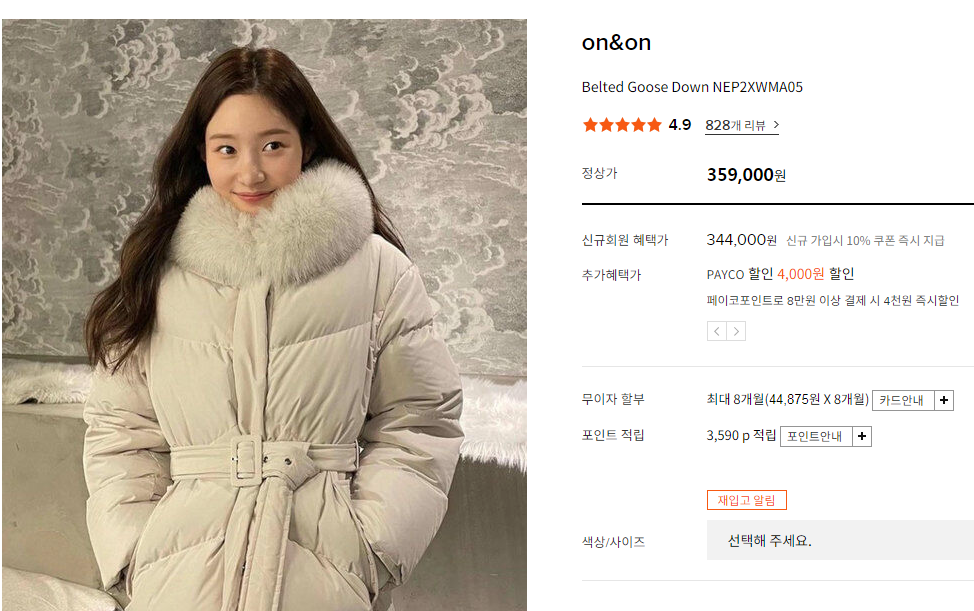 오른쪽은 패딩은 아니고 구스 다운인데, 저는 이 상품도 가지고 있습니다. 하하하하