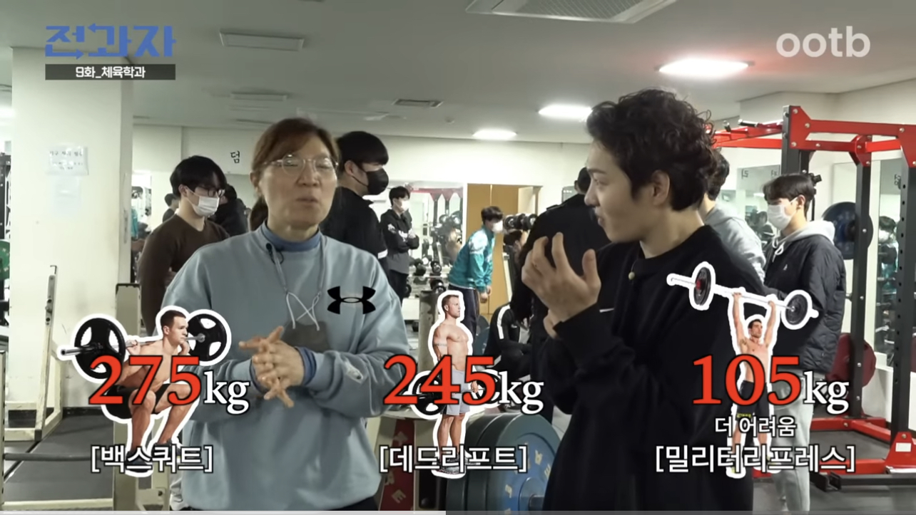 대신에 밀리터리프레스를 했는데, 자그마치 105kg 를 들었다고 합니다.