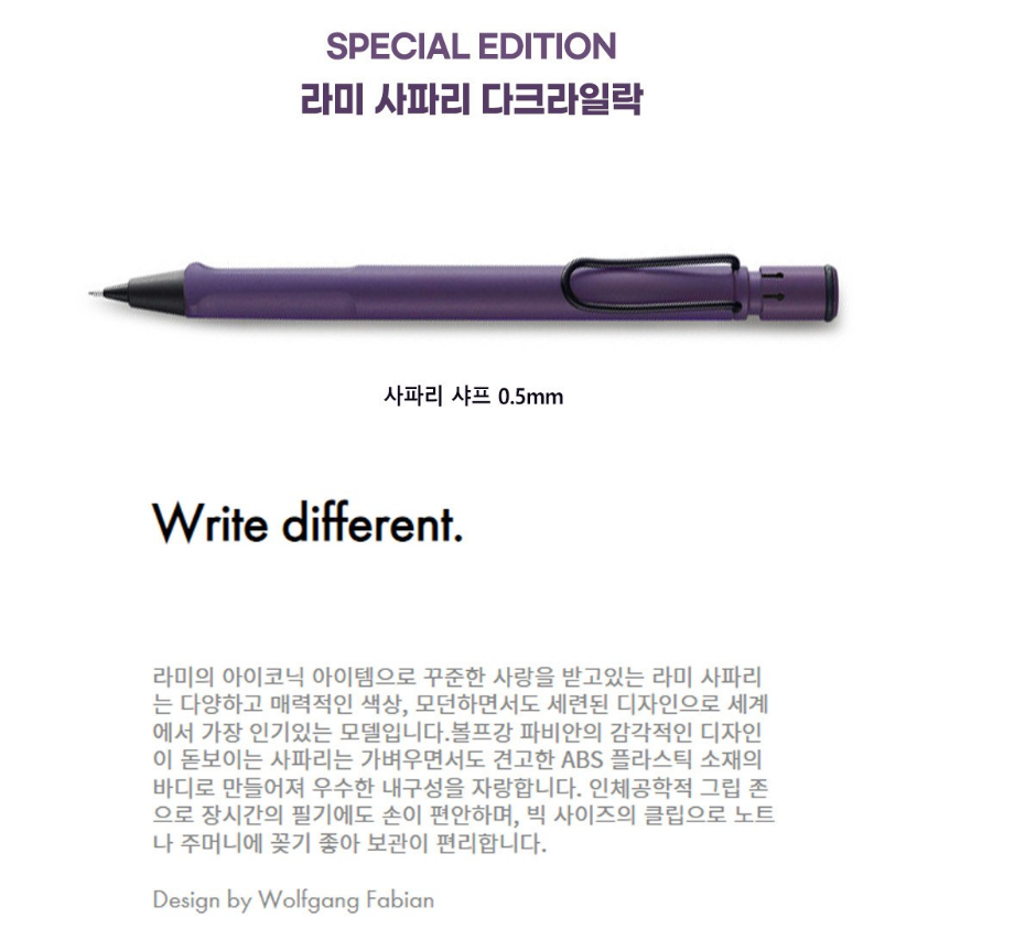 오늘은 라미 샤프중에서도 한정판인 다크 라일락 색상을 살펴보았는데요, 어떠셨나요?